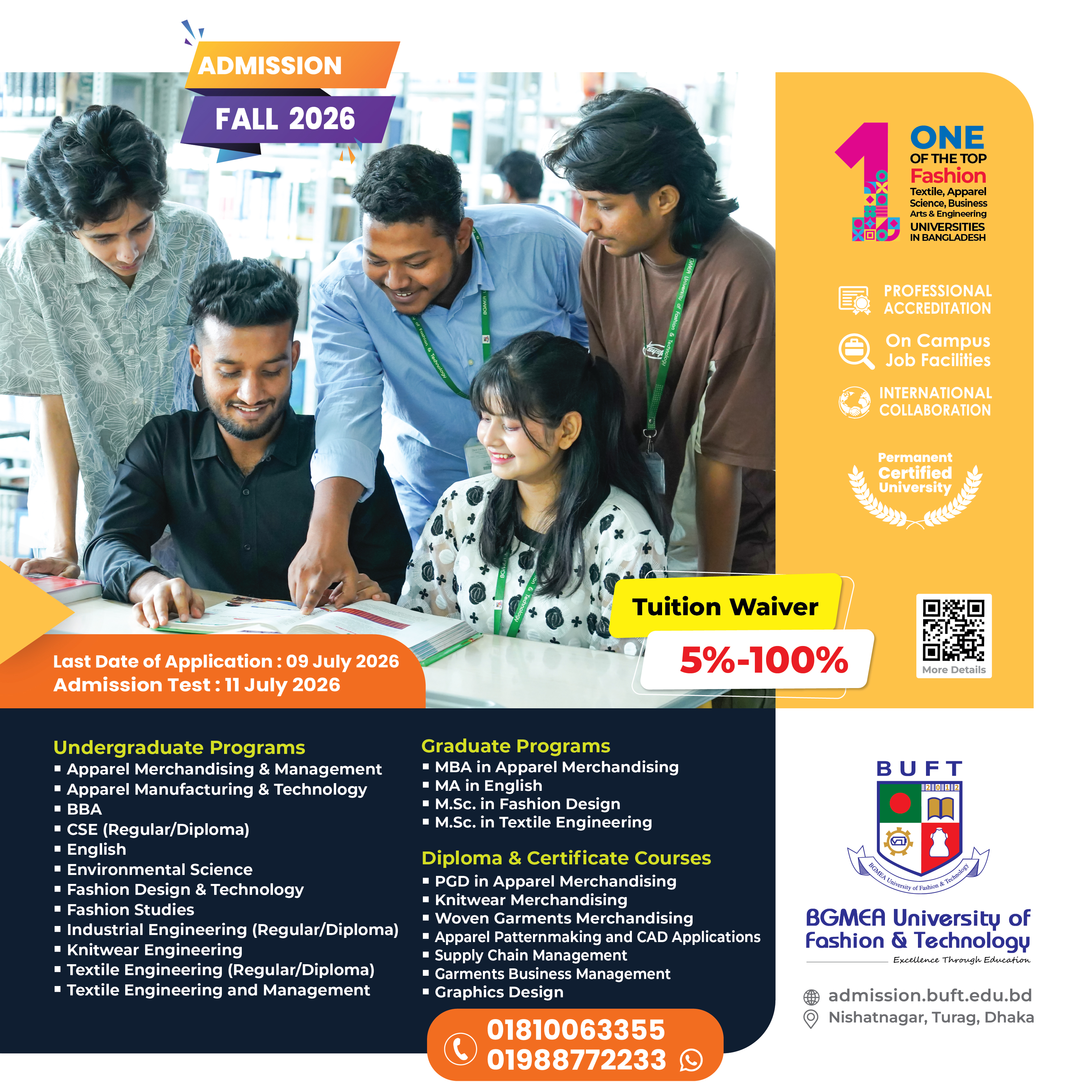 State-of-the-art lab facilities including – Physics Lab, Chemistry Lab, Civil Engineering Lab, Architectural Studios, Electrical Lab, Electronics Lab, Mechanical Engineering Lab, Computer Lab, Mechanical Engineering Lab, Engineering Drawing Lab, Design Studios, Yarn Manufacturing Lab, Weaving Lab, Circular Knitting Lab, Flat-bed Knitting Lab, Dyeing Lab, Printing Lab, Finishing Lab, Mini ETP, Pattern Studios, Cutting Lab, Sewing Lab, Surface Ornamentation Studios, Language Studio, Advanced Research Facilities, Library, E-mail facilities, etc.